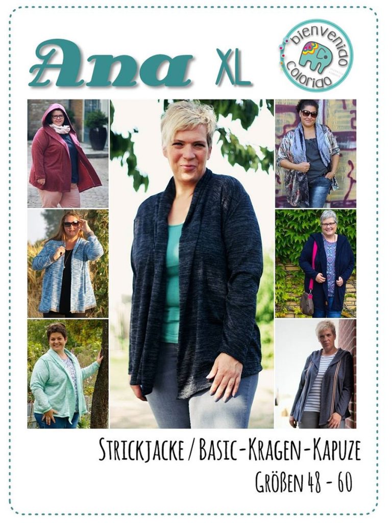 Da meine Strickjackenblockade nun gelöst war, bat ich Nelli (bienvenido colorido), die Jacke auch für die großen Größen gradieren zu lassen. Jetzt gibt es Ana plus als Papierschnittmuster und Ebook bis Gr. 60 in zwei Längen.