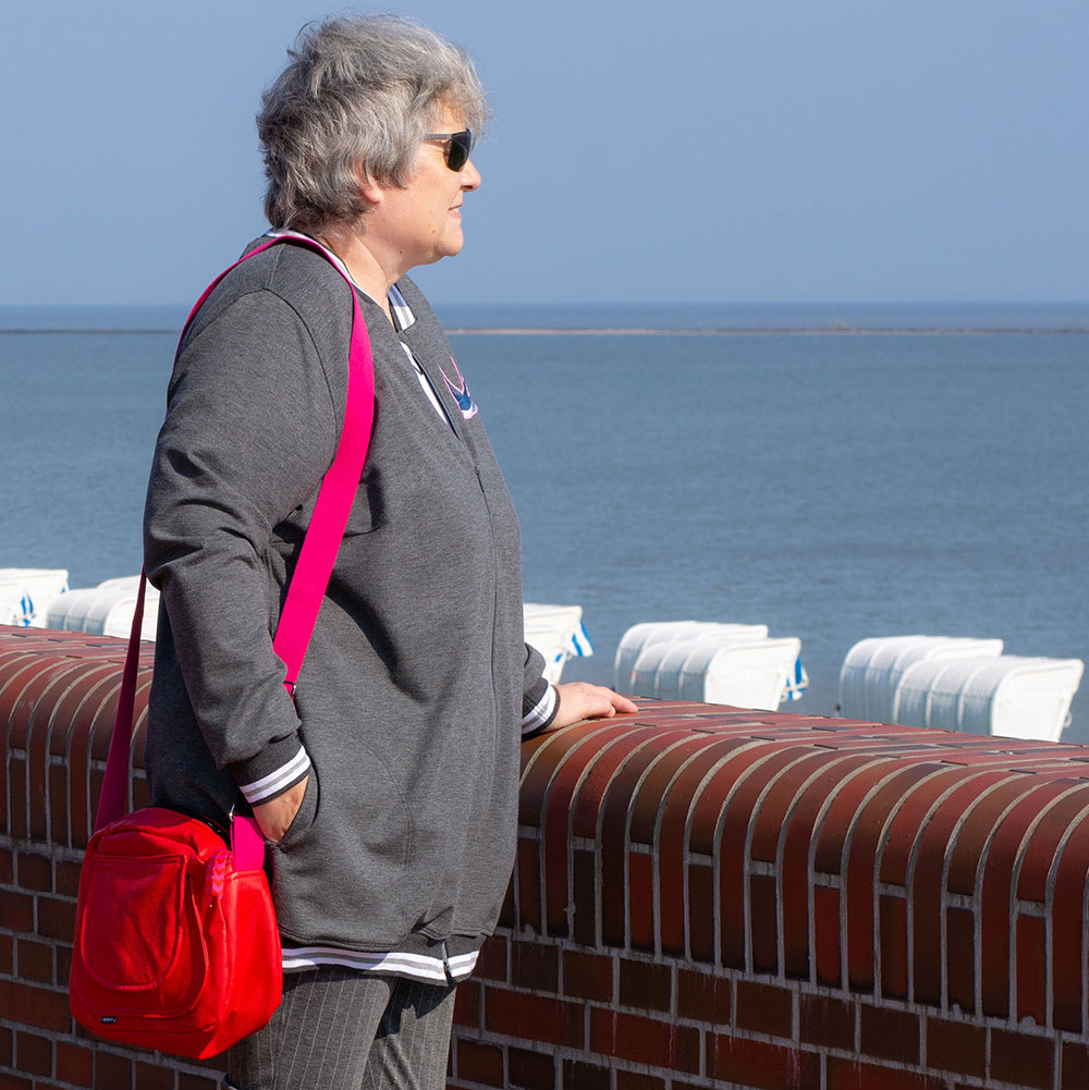 Der Taschenbeutel ist sauber eingearbeitet, liegt schön flach, ist unauffällig und schmiegt sich unseren Kurven an.